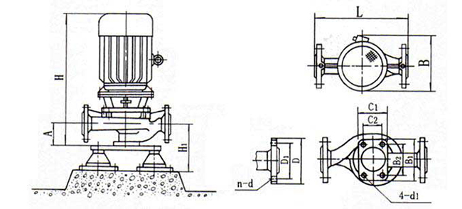 1、泵為立式結構,進出口口徑相同,且位于同一中心線上,可象閥門一樣安裝于管路之中,外形緊湊美觀,占地面積小,建筑投入低,如加上防護罩則可置于戶外使用。