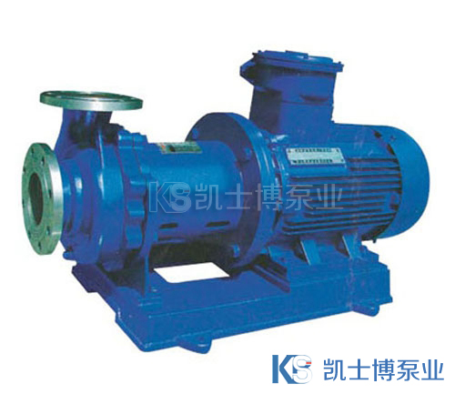 CQB磁力驅動離心泵(簡稱磁力泵),通常由電動機,磁力偶合器和耐腐蝕離心泵組成。其主要特點是利用磁力偶合器傳遞動力,完全無泄漏,當電動機帶動磁力偶合器的外磁鋼旋轉時,磁力線穿過問隙和隔離套,作用于內磁鋼上,使泵轉子與電動機同步旋轉,無機械接觸地傳遞扭矩。在泵軸的動力輸入端,由于液體被封閉在靜止的隔離套內,沒有動密封因而完全無泄漏。